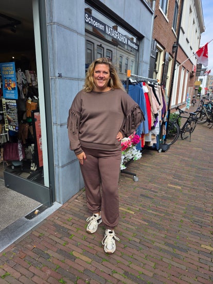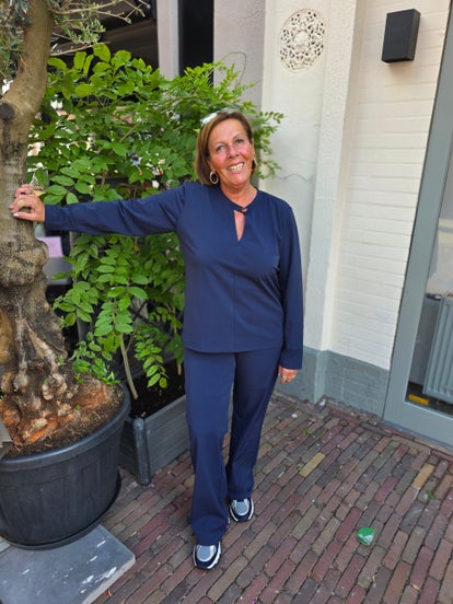 Blouse/vest kan tot een 44/46 gedragen worden. Is een oversize model.