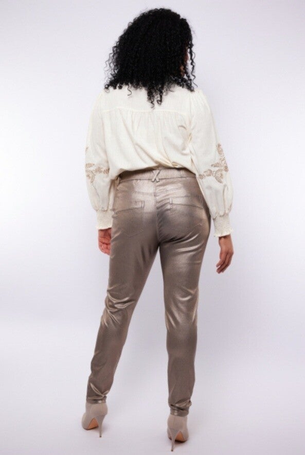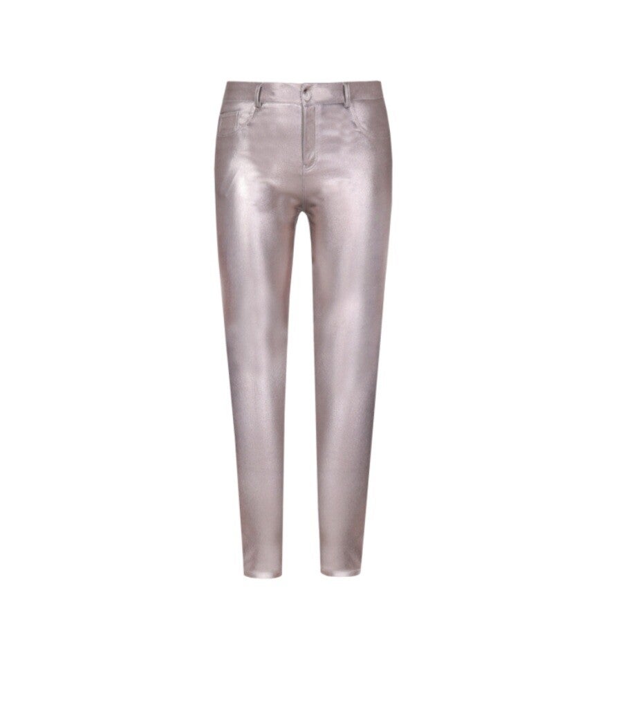 Shine bright in deze metallic zilverkleurige Rory broek! Met een aansluitende pasvorm en high-shine finish is dit dé eyecatcher voor je outfit. Combineer ‘m met een simpele top voor balans of ga all-in met glitter voor een feestelijke look.